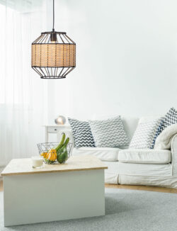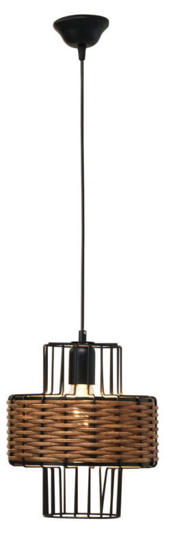 82.00 € Με Φ.Π.ΑInLight Κρεμαστό φωτιστικό από μαύρο μέταλλο, σχοινί και ξύλο 1XE27 D:26cm (4025-Α)