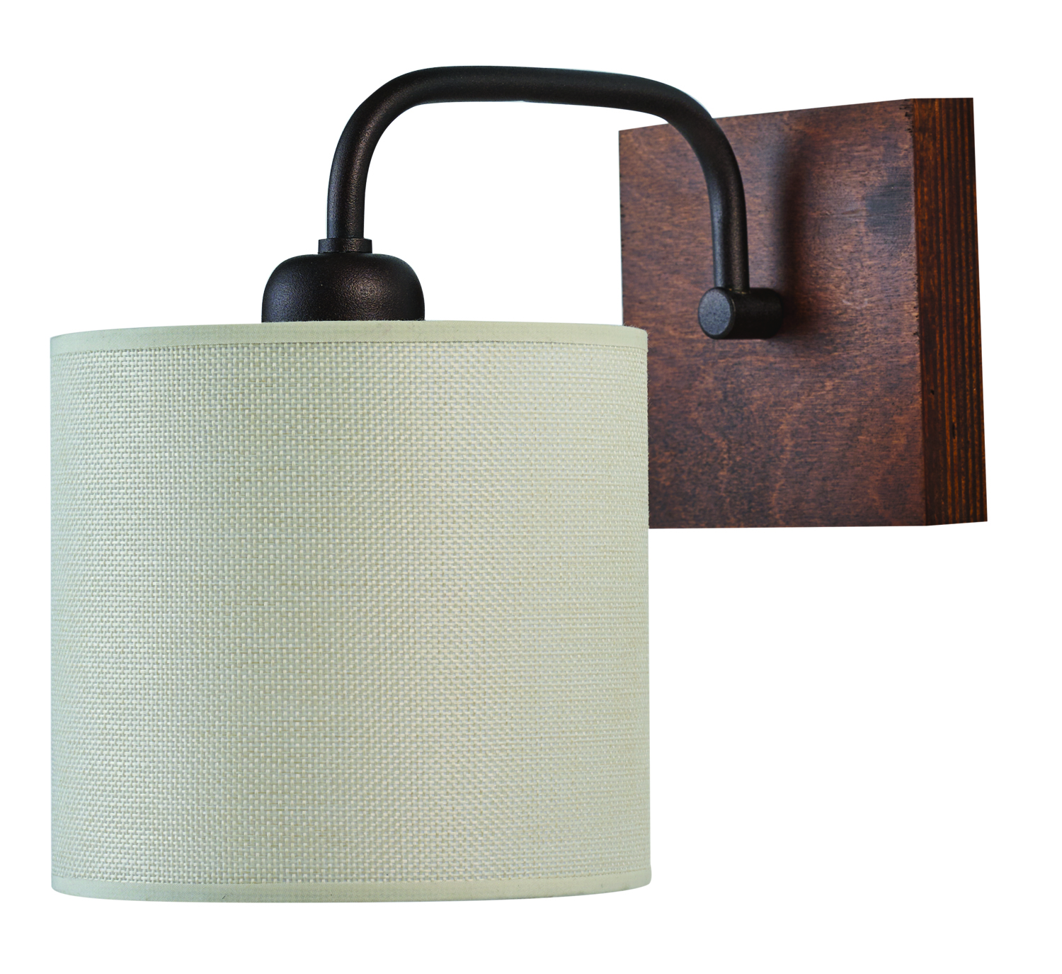 Φωτιστικό απλίκα 1φ Ε27, ξύλινη βάση σε φυσικό σκούρο χρώμα,συνδυασμένο με μεταλλικό μπράτσο και αμπαζούρ σε χρώμα μπεζ