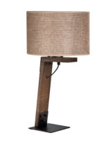 Επιτραπέζια λάμπα 1φ Ε27 σε μοντέρνα γραμμή, ξύλο σημύδα σε σκούρο χρώμα, μεταλλικά μέρη σε χρώμα σκουριά και αμπαζούρ ύφασμα σε χρώμα μόκα Φ30