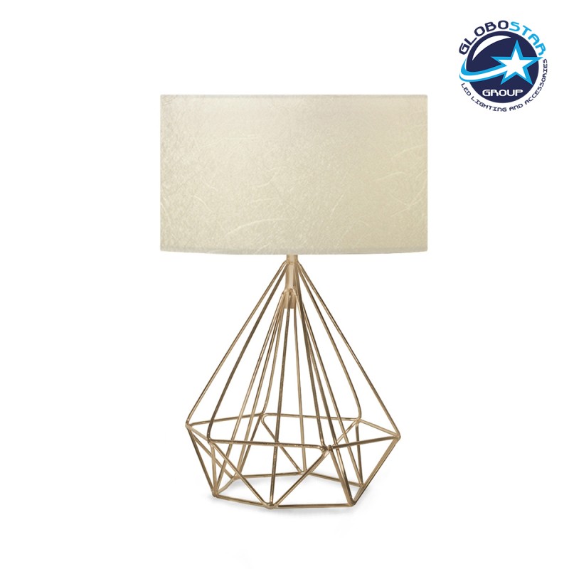 Μοντέρνο Eπιτραπέζιο Φωτιστικό DIAMOND E27 Χρυσό Μέταλλο με Μπεζ Ύφασμα – Μ24 x Π24 x Υ35cm 204-0084