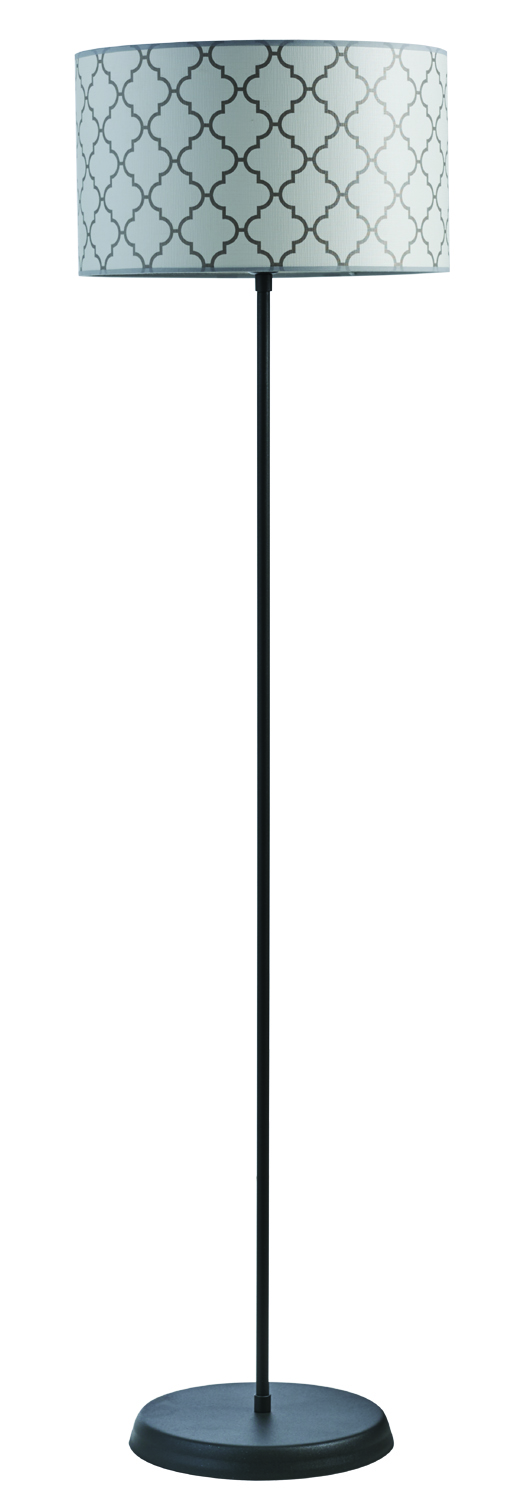 Φωτιστικό δαπέδου 1φ Ε27 σε μοντέρνα γραμμή,μεταλλικά μέρη σε χρώμα γραφίτη και αμπαζούρ ύφασμα σε χρώμα λευκό/γκρί Φ40