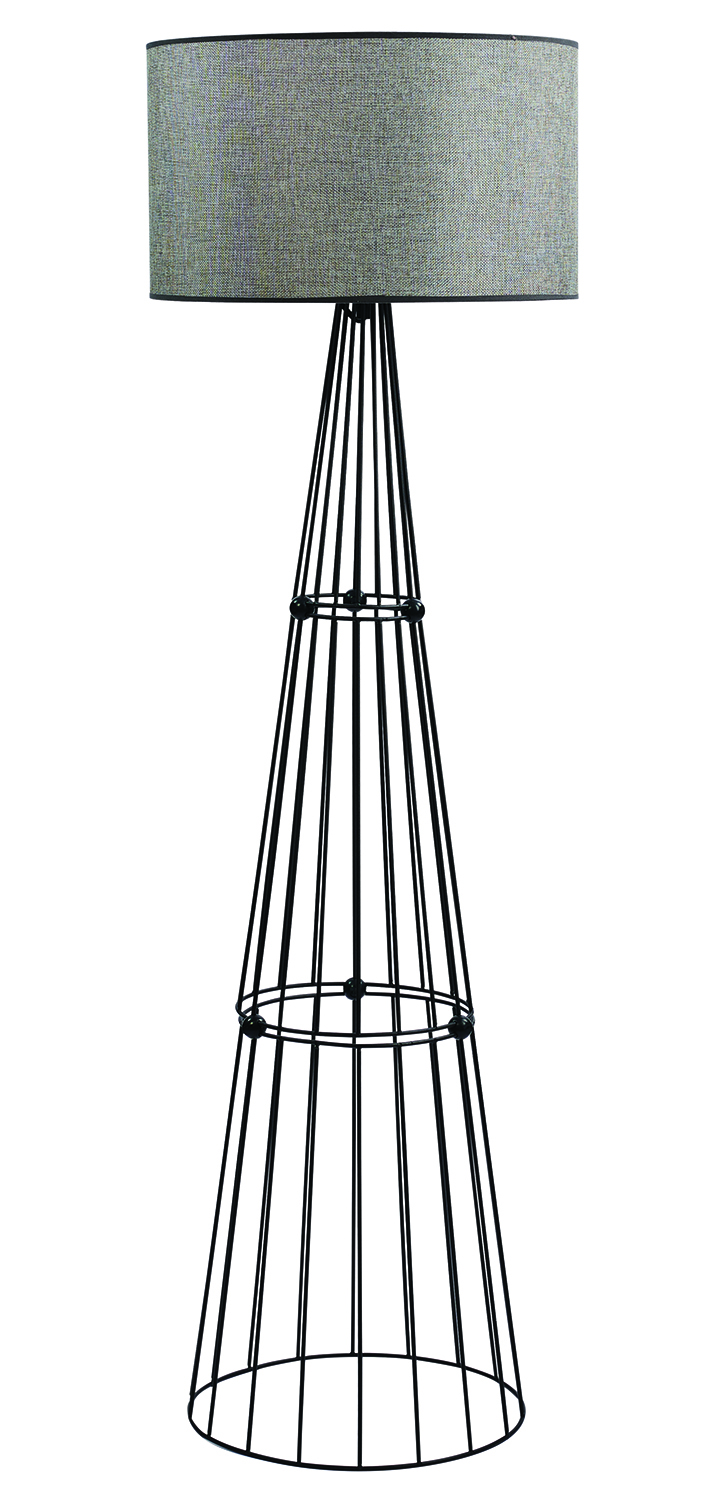 Φωτιστικό δαπέδου 1φ Ε27 σε μοντέρνα γραμμή,μεταλλικά μέρη σε χρώμα μαύρο και αμπαζούρ ύφασμα σε χρώμα γκρι Φ40