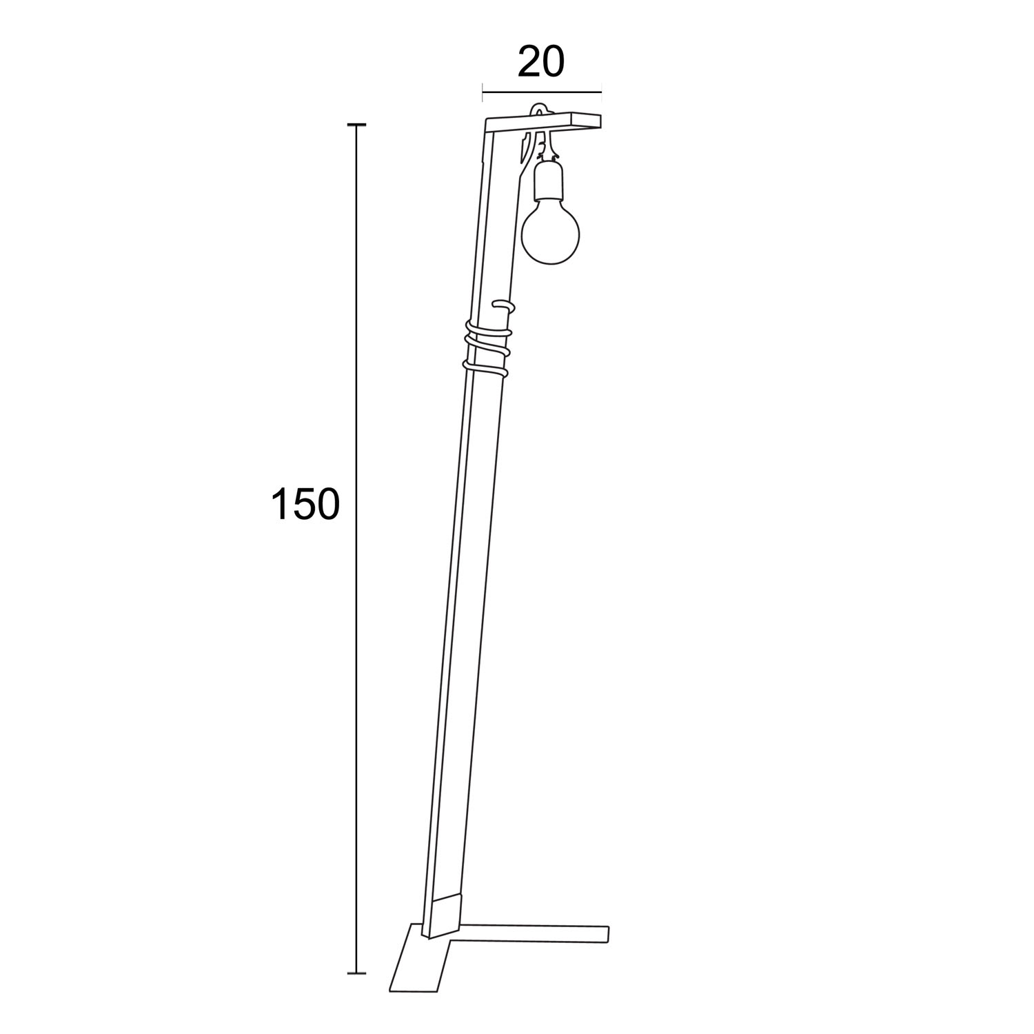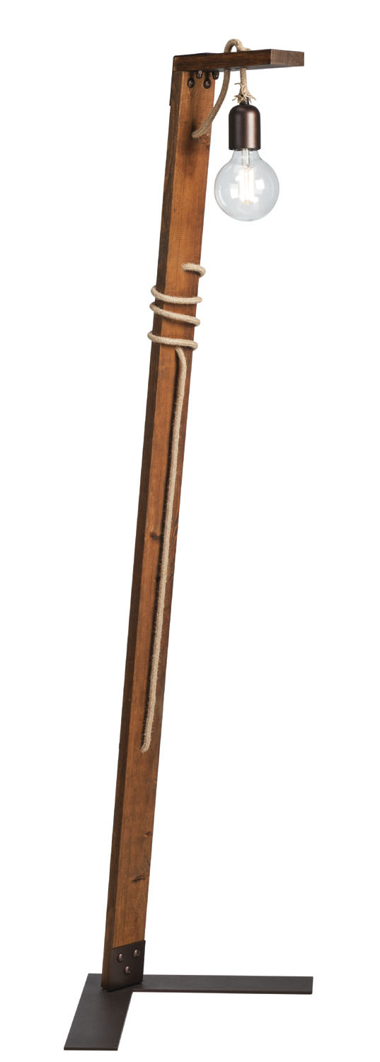 Φωτιστικό δαπέδου 1φ Ε27, ξύλο σε φυσικό σκούρο χρώμα συνδυασμένο με φυσικο σχοινι και μεταλλικά μέρη σε σκουριά