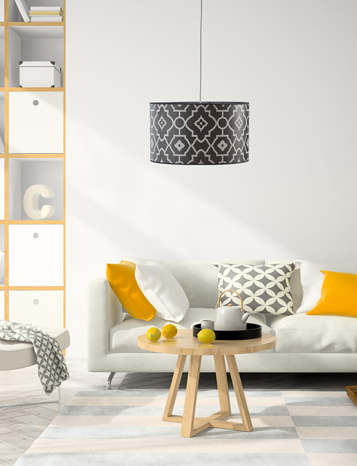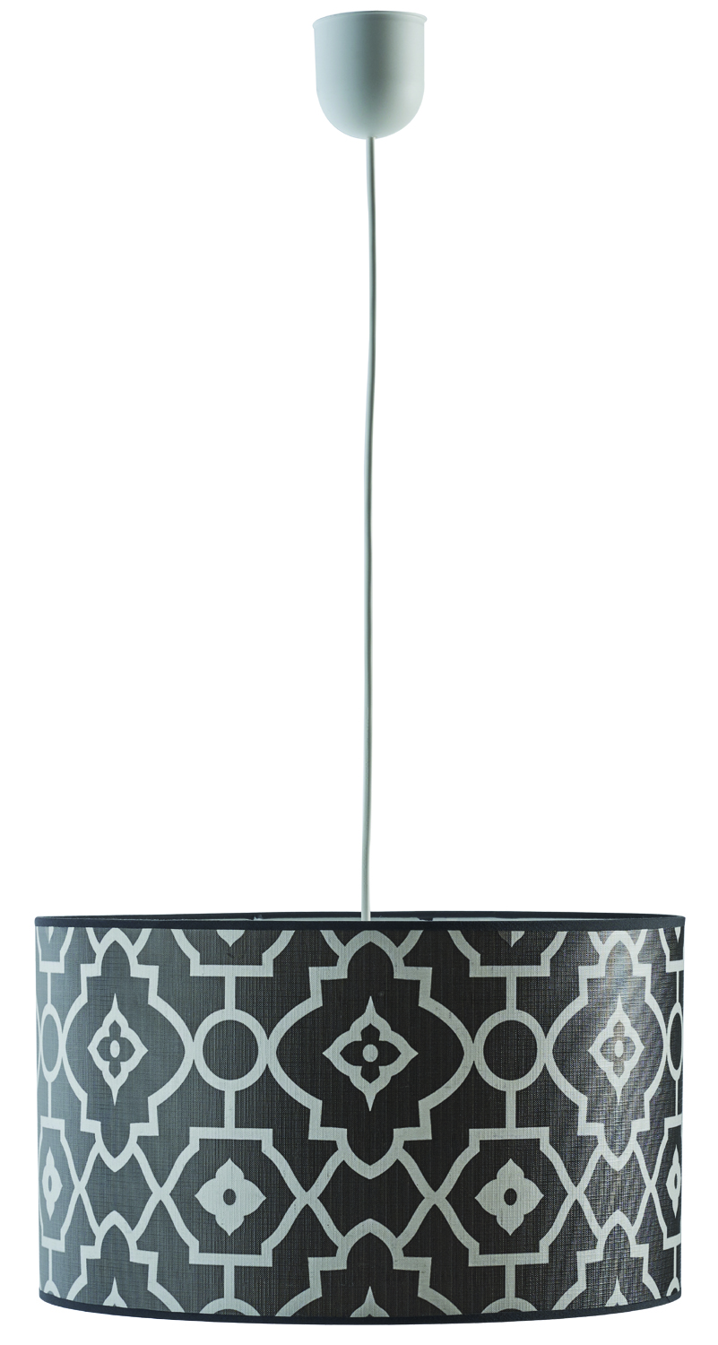 Φωτιστικό μονόφωτο αμπαζούρ ύφασμα σε χρώμα γκρί με σχέδιο λευκό Ε27 Φ40