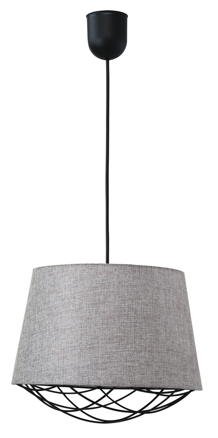 Φωτιστικό μονόφωτο αμπαζούρ ύφασμα σε χρώμα γκρι και πλέγμα μαύρο Ε27 Φ30