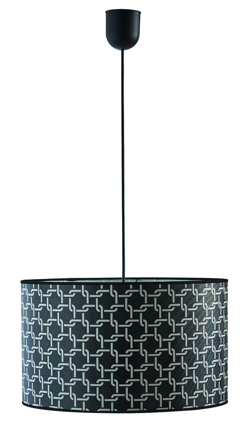 Φωτιστικό μονόφωτο αμπαζούρ ύφασμα σε χρώμα μαύρο με σχέδιο λευκό Ε27 Φ40