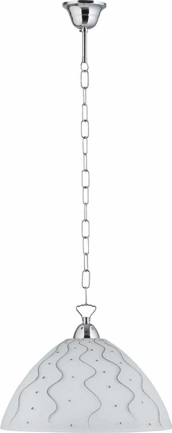 Φωτιστικό μονόφωτο γυάλινο σε χρώμα λευκό με λεπτομέρειες ασημί και αλυσίδα νίκελ Ε27 Φ36
