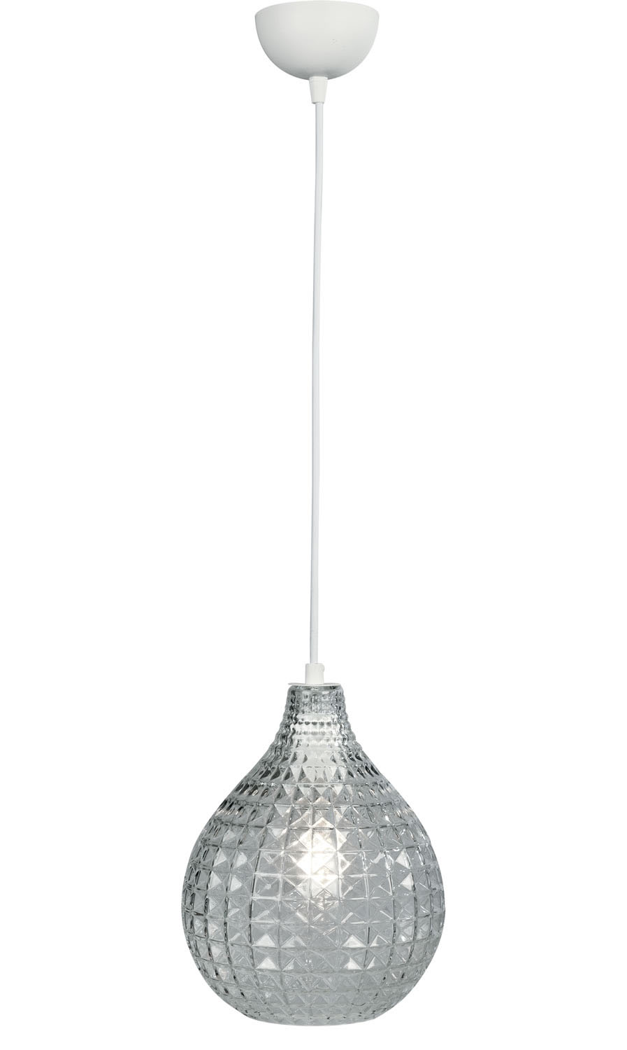 Φωτιστικό μονόφωτο γυάλινο σε μοντέρνα γραμμή και χρώμα διάφανο με υφασμάτινο καλώδιο λευκό Ε27 Φ24