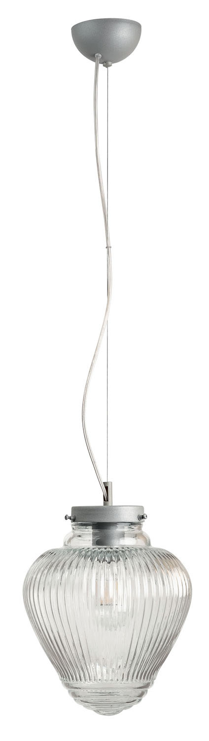 Φωτιστικό μονόφωτο γυάλινο σε μοντέρνα γραμμή διάφανο με συρματόσχοινο ασημί Ε27 Φ25