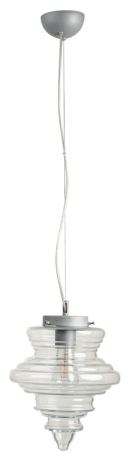 Φωτιστικό μονόφωτο γυάλινο σε μοντέρνα γραμμή διάφανο με συρματόσχοινο ασημί Ε27 Φ26