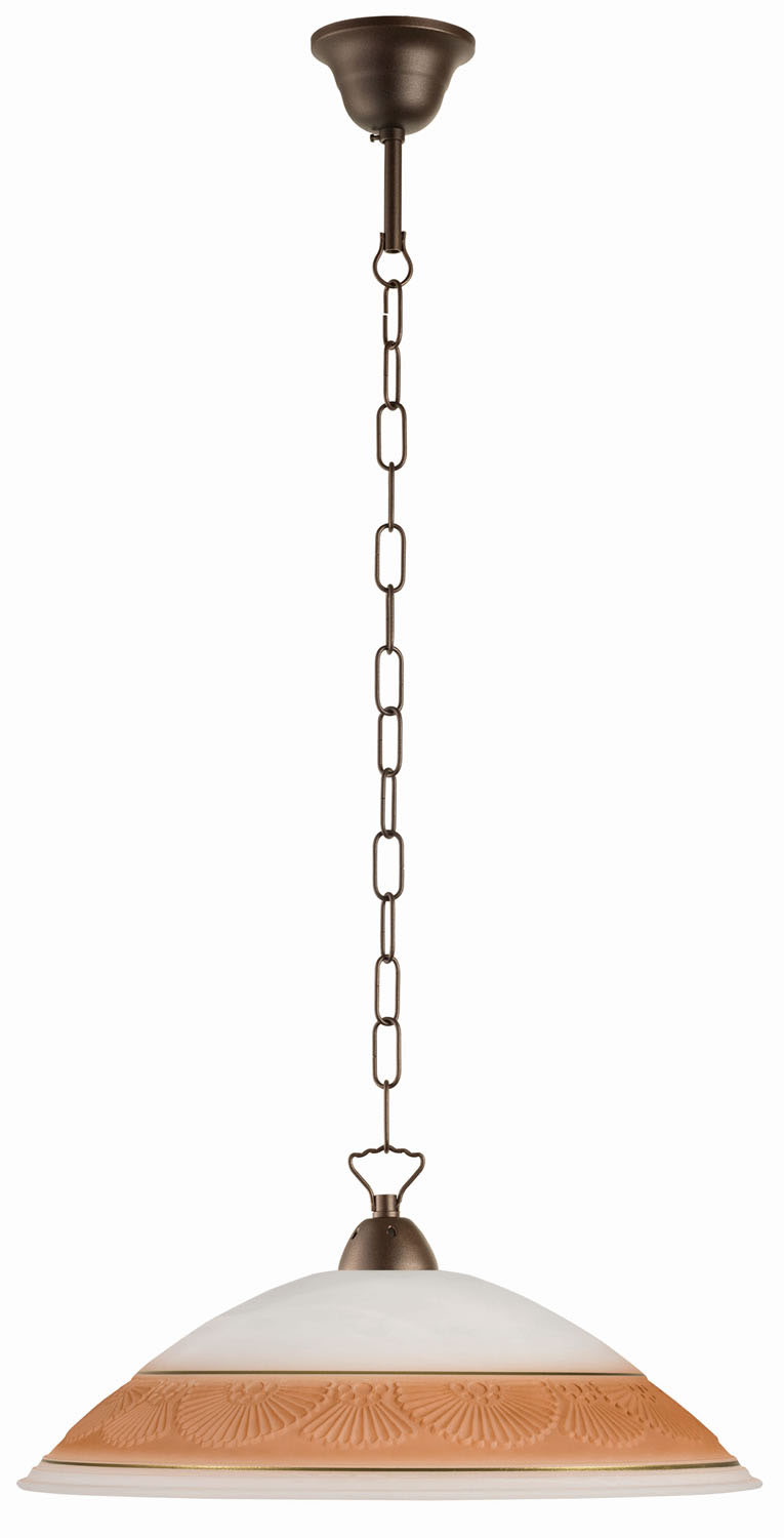 Φωτιστικό μονόφωτο γυάλινο κλασικό σε χρώμα λευκό με μπορντούρα καφέ και αλυσίδα μπρονζέ Ε27 Φ45