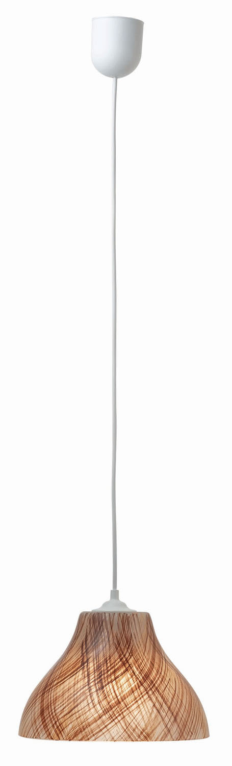 Φωτιστικό μονόφωτο γυάλινο σε μοντέρνα γραμμή σε χρώμα μελί με καφέ πινελιές και ανάρτηση καλώδιο λευκό Ε27 Φ24