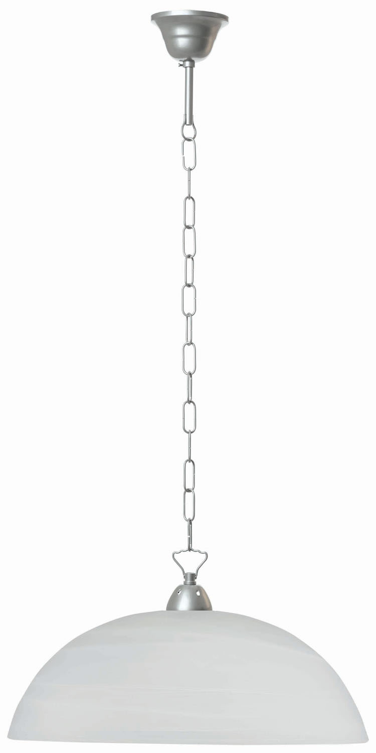 Φωτιστικό μονόφωτο γυάλινο κλασικό σε λευκό αλάβαστρο με αλυσίδα νίκελ Ε27 Φ40