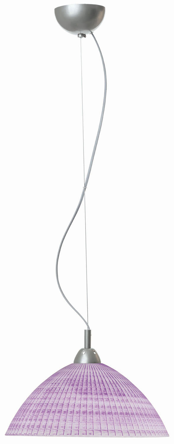 Φωτιστικό μονόφωτο γυάλινο σε χρώμα λιλά με συρματόσχοινο νίκελ Ε27 Φ36