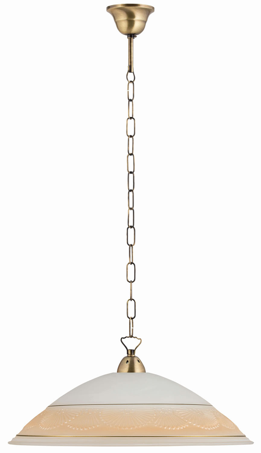 Φωτιστικό μονόφωτο γυάλινο κλασικό σε χρώμα λευκό με μπορντούρα μελί και αλυσίδα μπρονζέ Ε27 Φ45