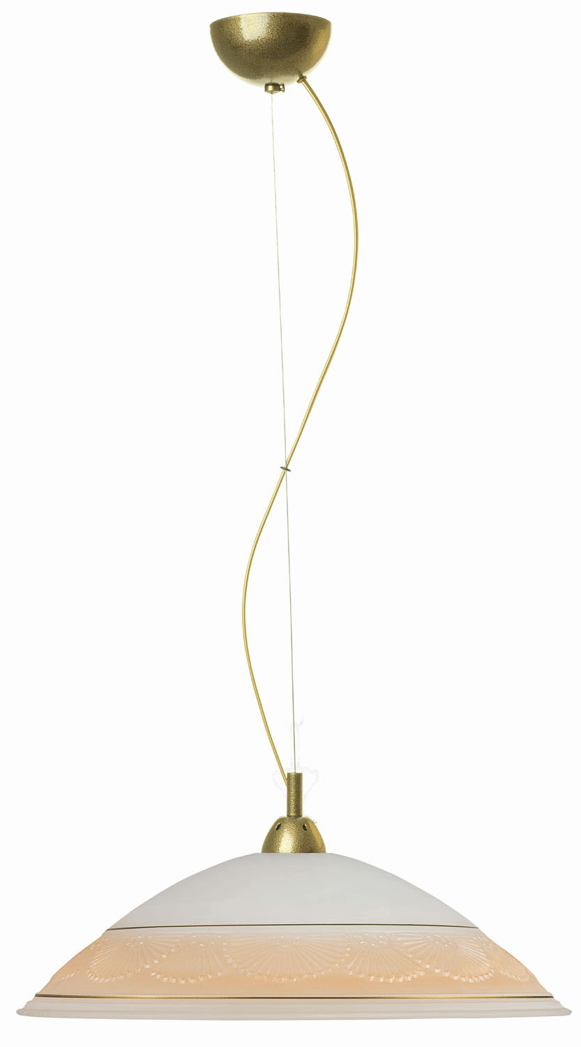 Φωτιστικό μονόφωτο γυάλινο κλασικό σε χρώμα λευκό με μπορντούρα μελί και συρματόσχοινο μπρονζέ Ε27 Φ45