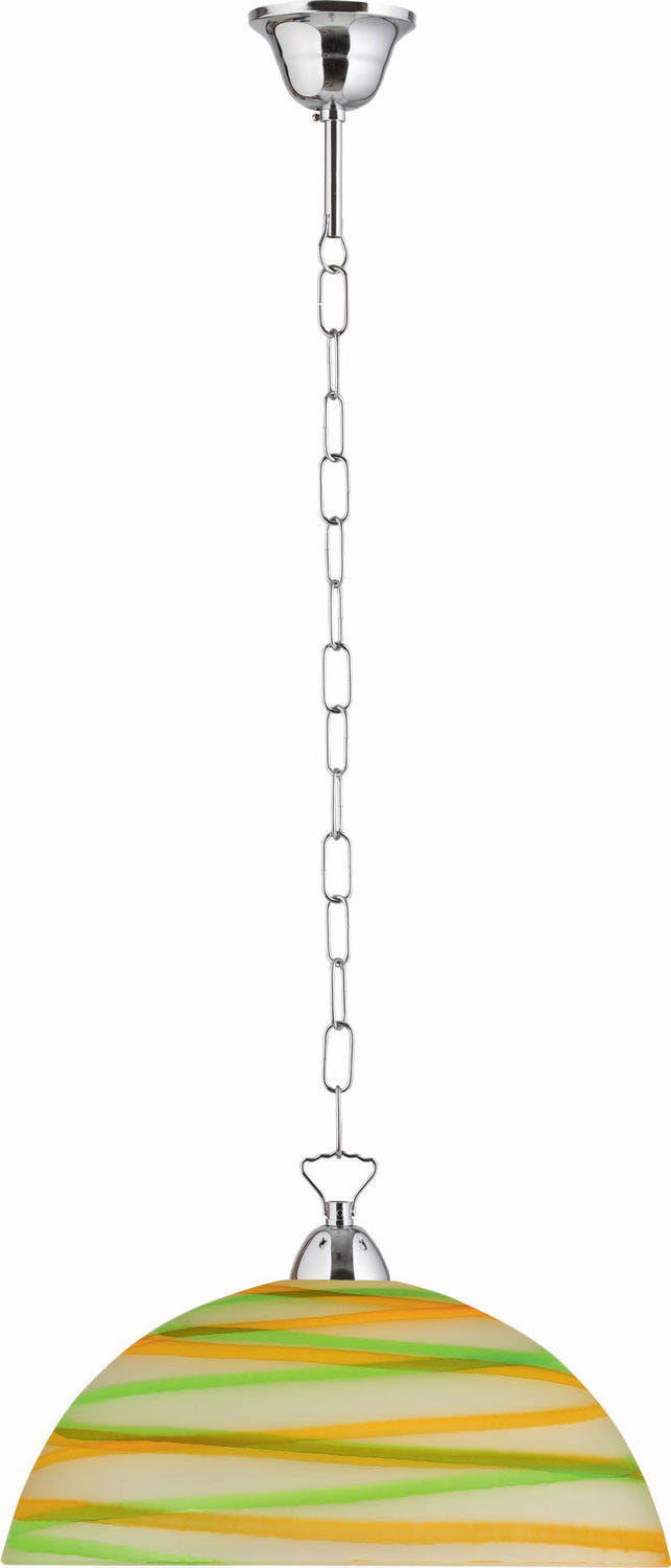 Φωτιστικό μονόφωτο γυάλινο σε χρώμα πράσινο/πορτοκαλί και αλυσίδα νίκελ Ε27 Φ36