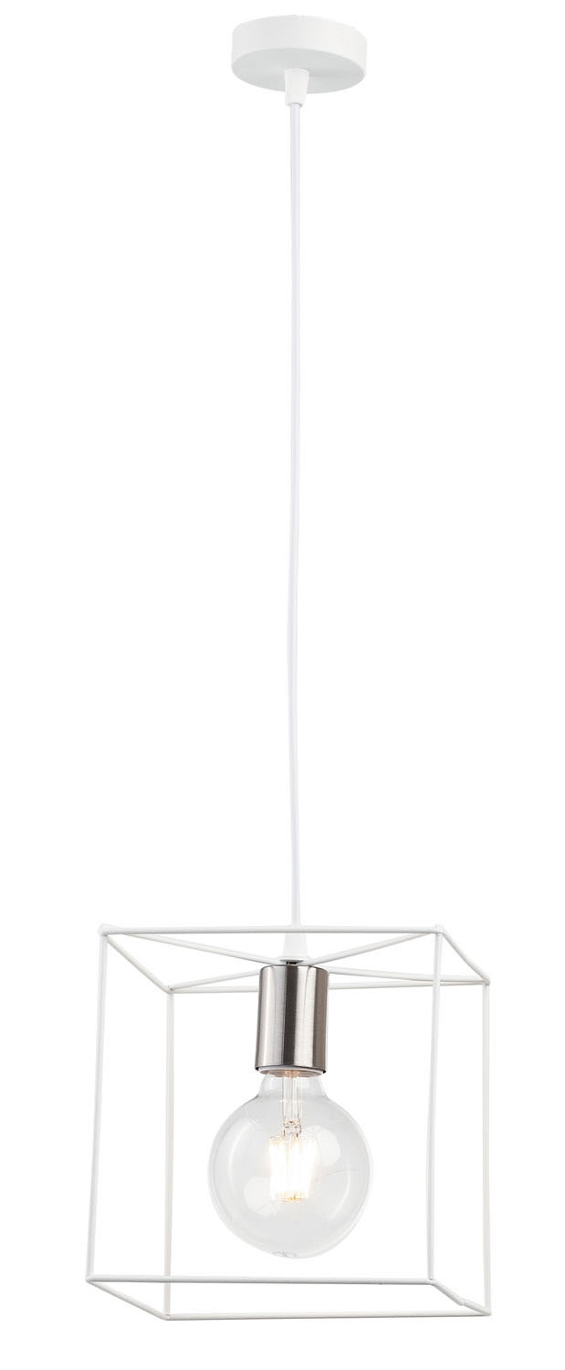 Φωτιστικό μονόφωτο κύβος μεταλλικό σε χρώμα λευκό με λεπτομέρειες νίκελ Ε27 Φ20