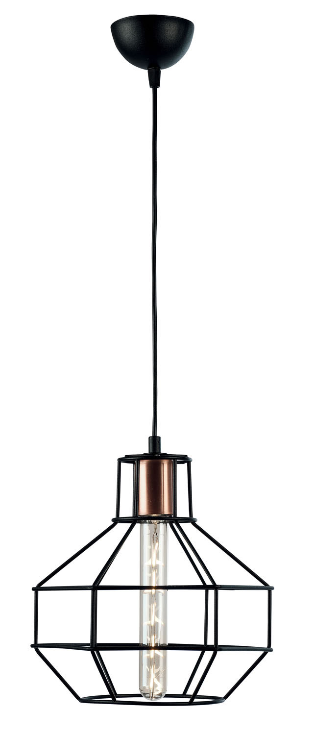 Φωτιστικό μονόφωτο μεταλλικό σε χρώμα μαύρο με λεπτομέρειες χαλκού Ε27 Φ26