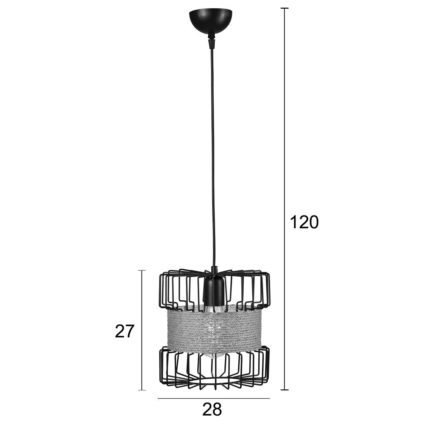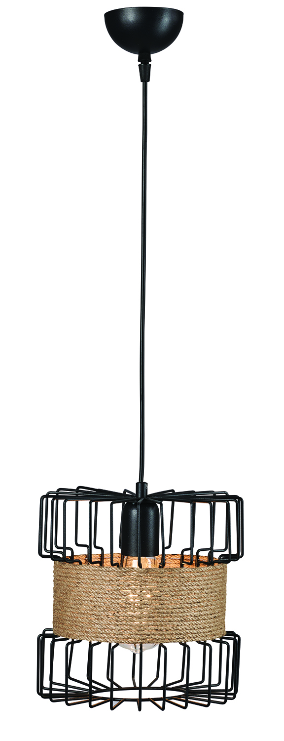 Φωτιστικό μονόφωτο μέταλλο μαύρο/σχοινί Ε27 Φ28