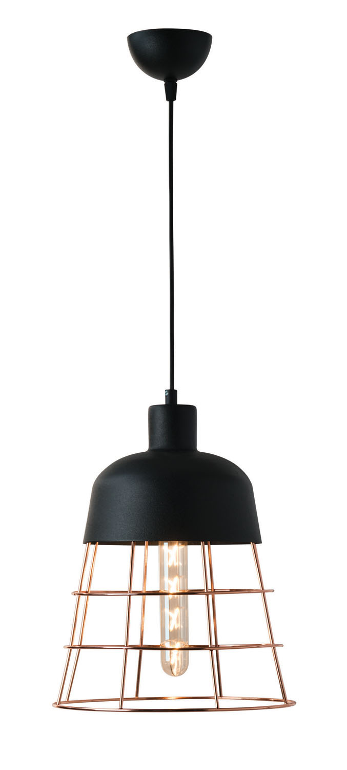 Φωτιστικό μονόφωτο σε μοντέρνα σχεδίαση από μέταλλο σε μαύρο χρώμα και πλέγμα σε χαλκό Ε27 Φ26