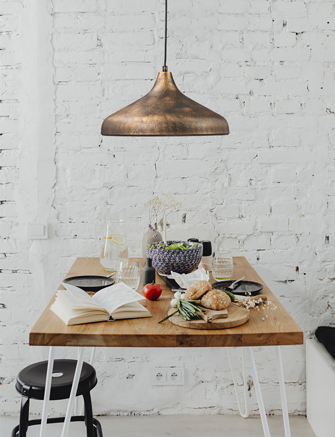 Φωτιστικό μονόφωτο μέταλλό σε χρώμα μαύρο με πατίνα χρυσή Ε27 Φ42