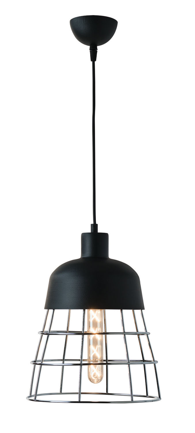 Φωτιστικό μονόφωτο σε μοντέρνα σχεδίαση από μέταλλο σε μαύρο χρώμα και πλέγμα σε χρώμιο Ε27 Φ26