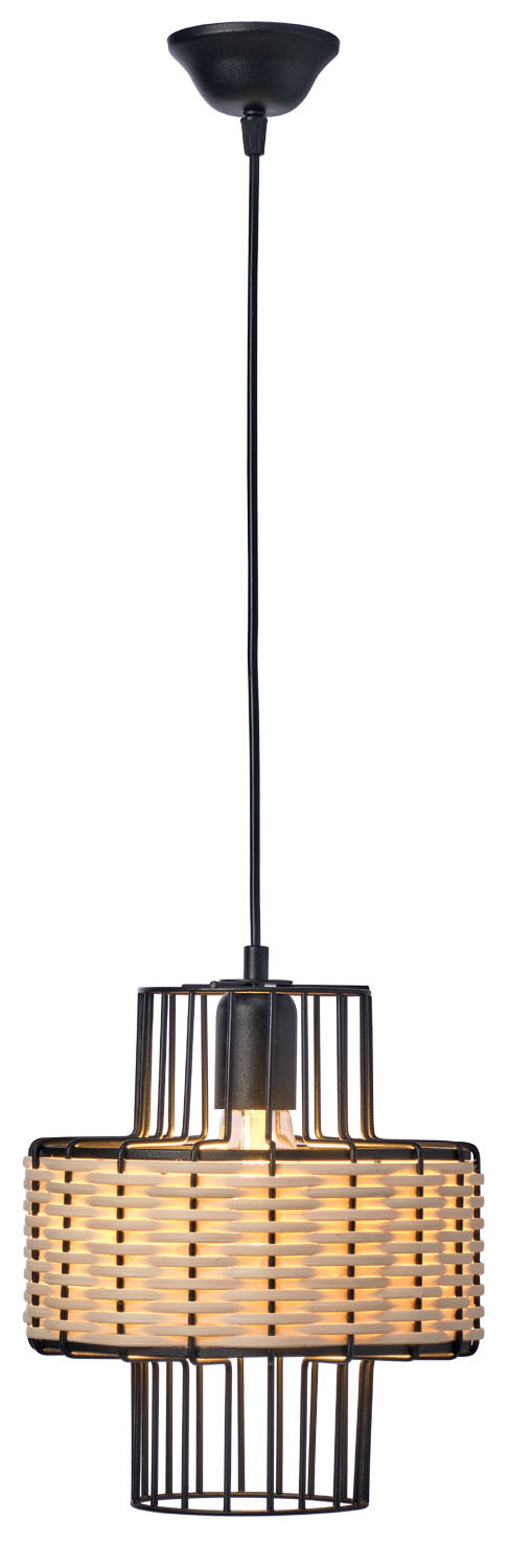 Φωτιστικό μονόφωτο μέταλλο/ρατάν σε μαύρο χρώμα και ρατάν σε φυσικο χρώμα Ε27 Φ30