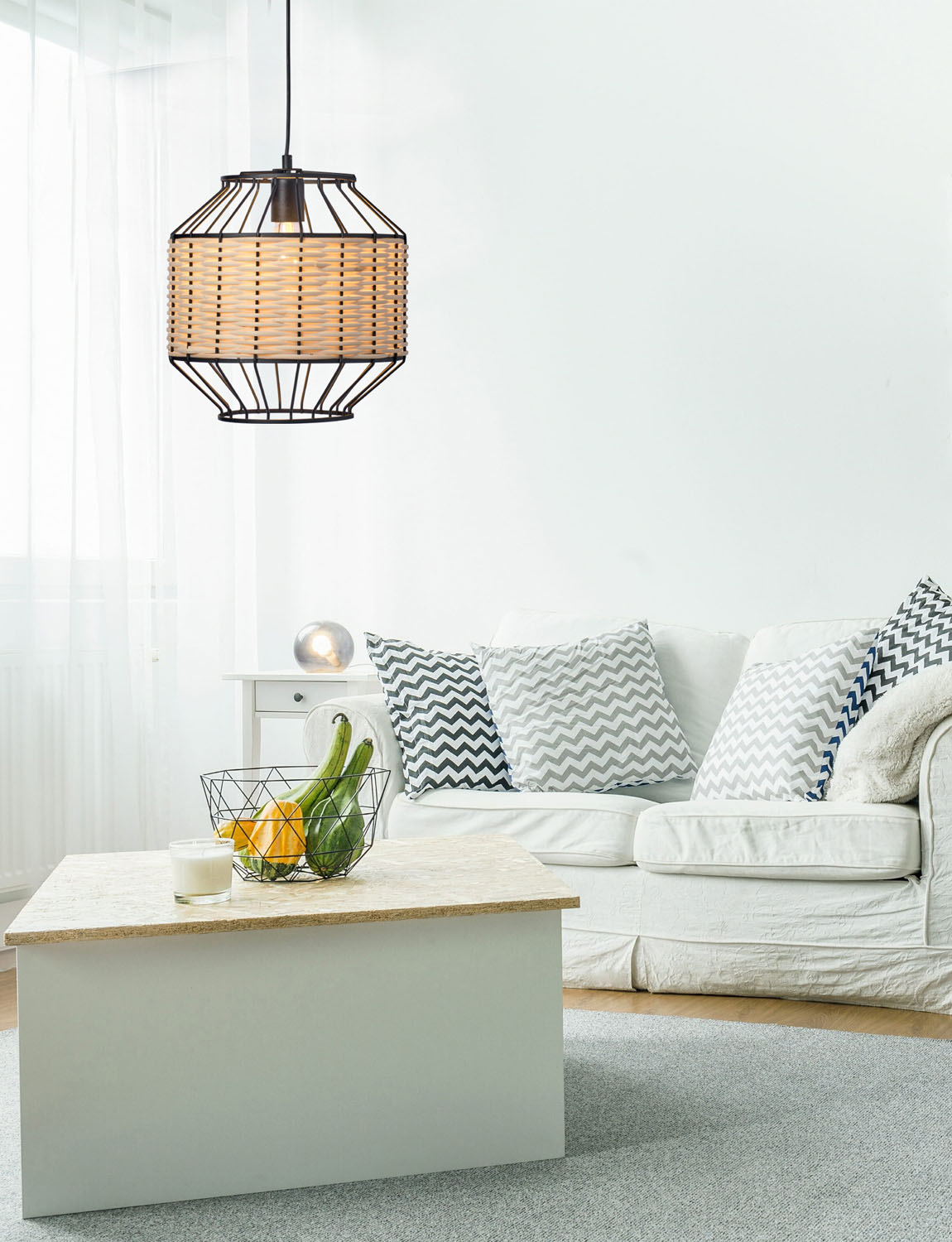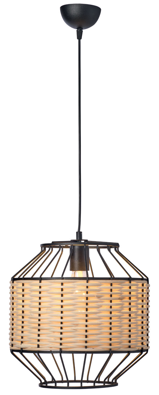 Φωτιστικό μονόφωτο μέταλλο/ρατάν σε μαύρο χρώμα και ρατάν σε φυσικο χρώμα Ε27 Φ30