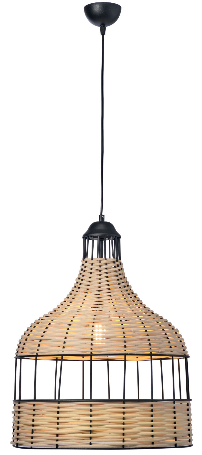Φωτιστικό μονόφωτο μέταλλο/ρατάν σε μαύρο χρώμα και ρατάν σε φυσικο χρώμα Ε27 Φ41