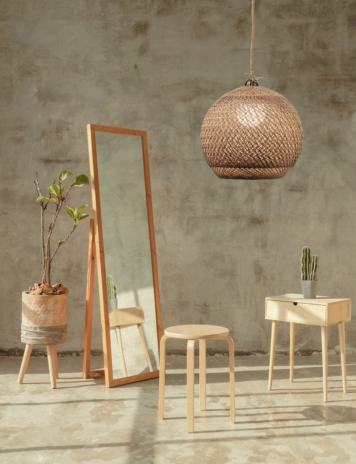 Φωτιστικό μονόφωτο μπάλα από σχοινί σε χρώμα φυσικό με ανάρτηση σχοινί Ε27 Φ40