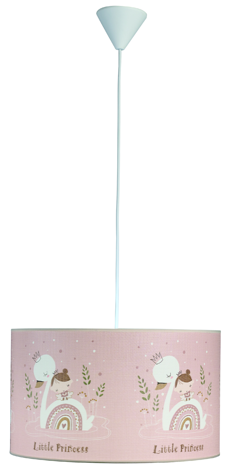 Φωτιστικό μονόφωτο παιδικό αμπαζούρ,ύφασμα με σχέδιο κύκνος σε ροζ απόχρωση Ε27 Φ40