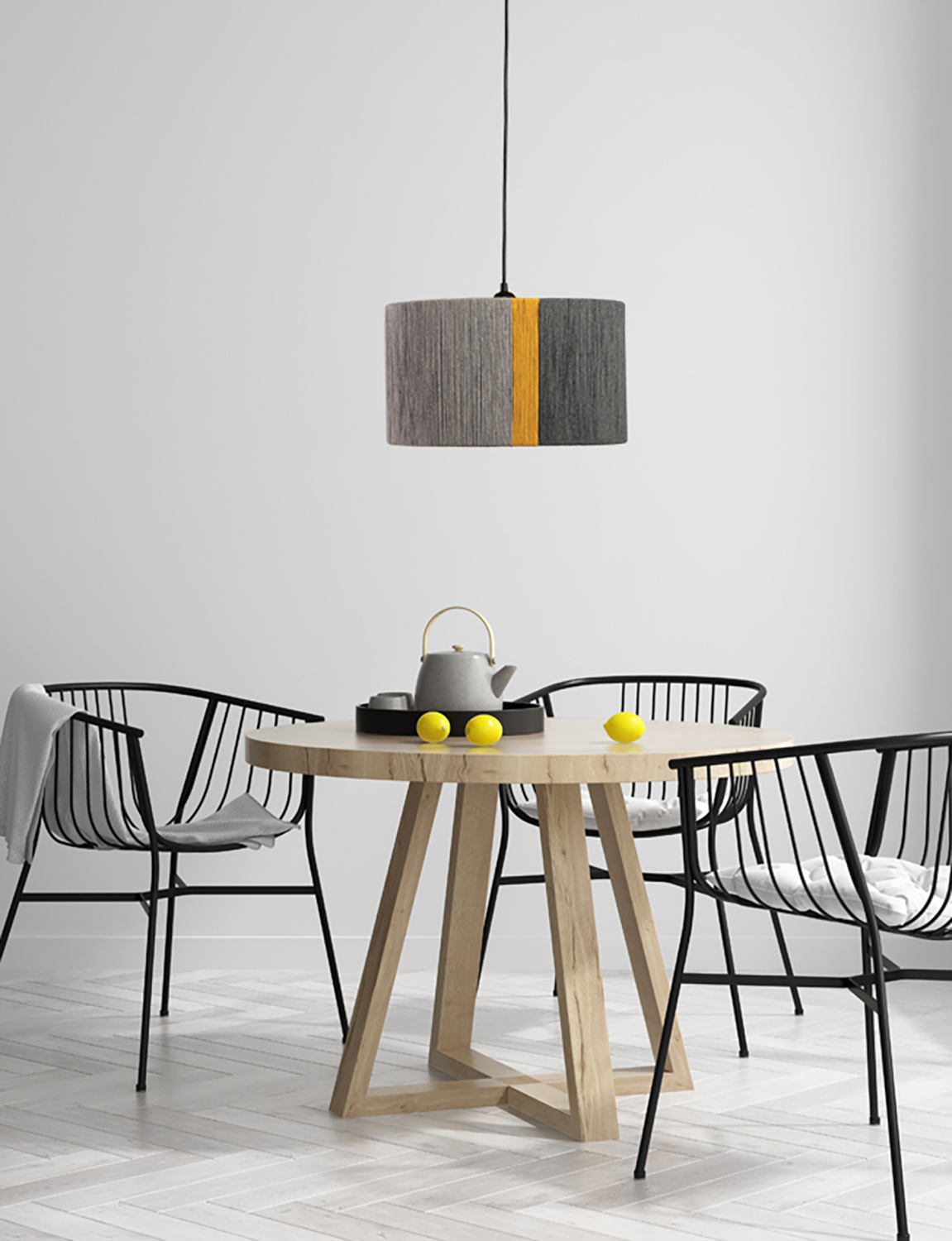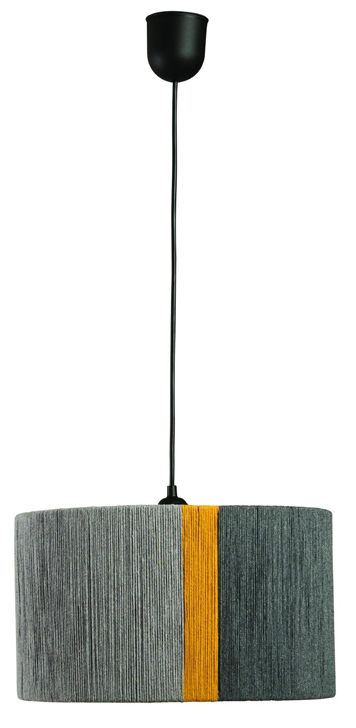 Φωτιστικό μονόφωτο σχοινί σε χρώμα γκρί σκούρο,γκρί ανοικτό με κιτρινη λεπτομέρεια Ε27 Φ35