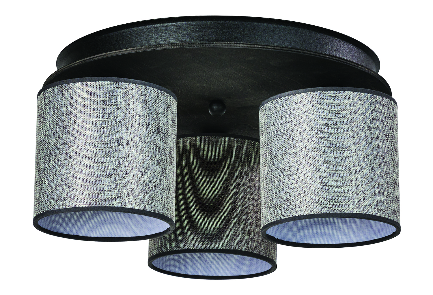 Φωτιστικό Οροφής 3φ με ξύλο σημύδα σε γκρι σκούρο χρώμα και αμπαζούρ Φ15 ύφασμα σε χρώμα γκρι