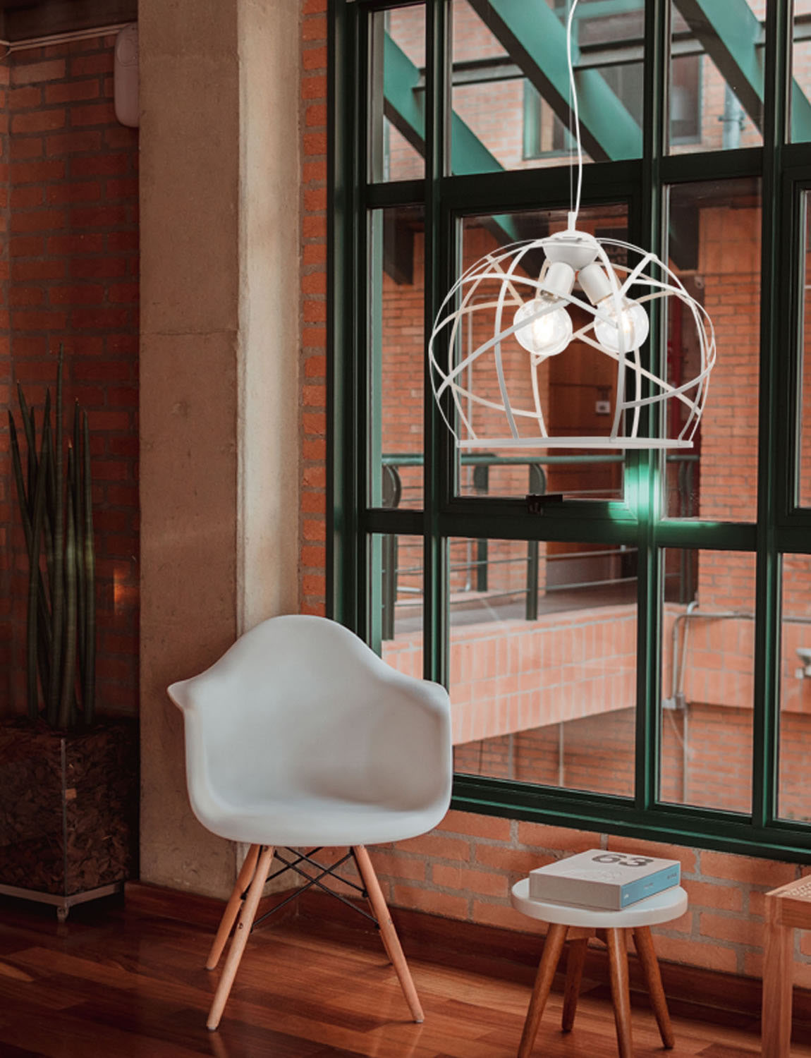 Φωτιστικό πλέγμα σε μοντέρνα σχεδίαση από μέταλλο σε λευκό χρώμα με 3 λάμπες Ε27 και διάμετρο Φ50