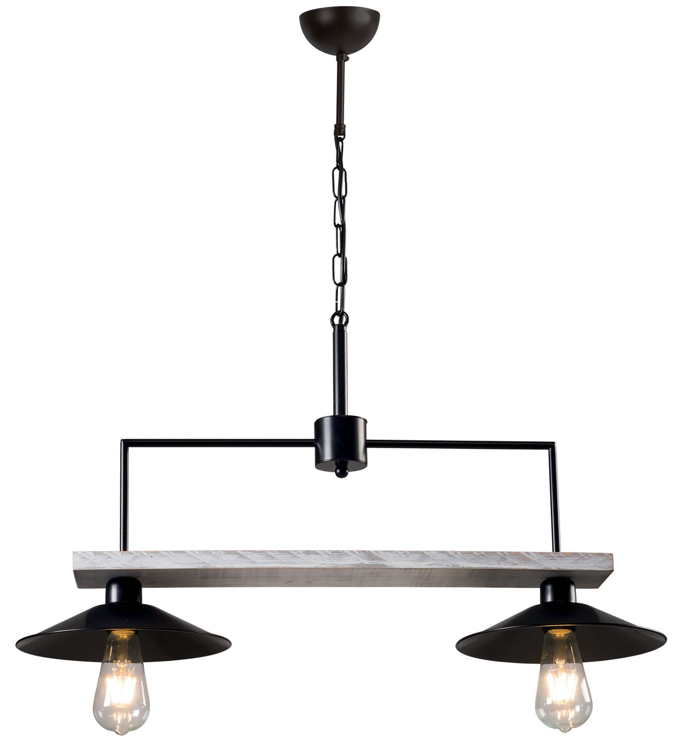 Φωτιστικό Πολύφωτο 2φ Ε27 σε μοντέρνα γραμμή με ξύλο σε χρώμα λευκό ντεκαπέ και μεταλλικά μέρη σε μαύρο με μεταλλικά καπέλα
