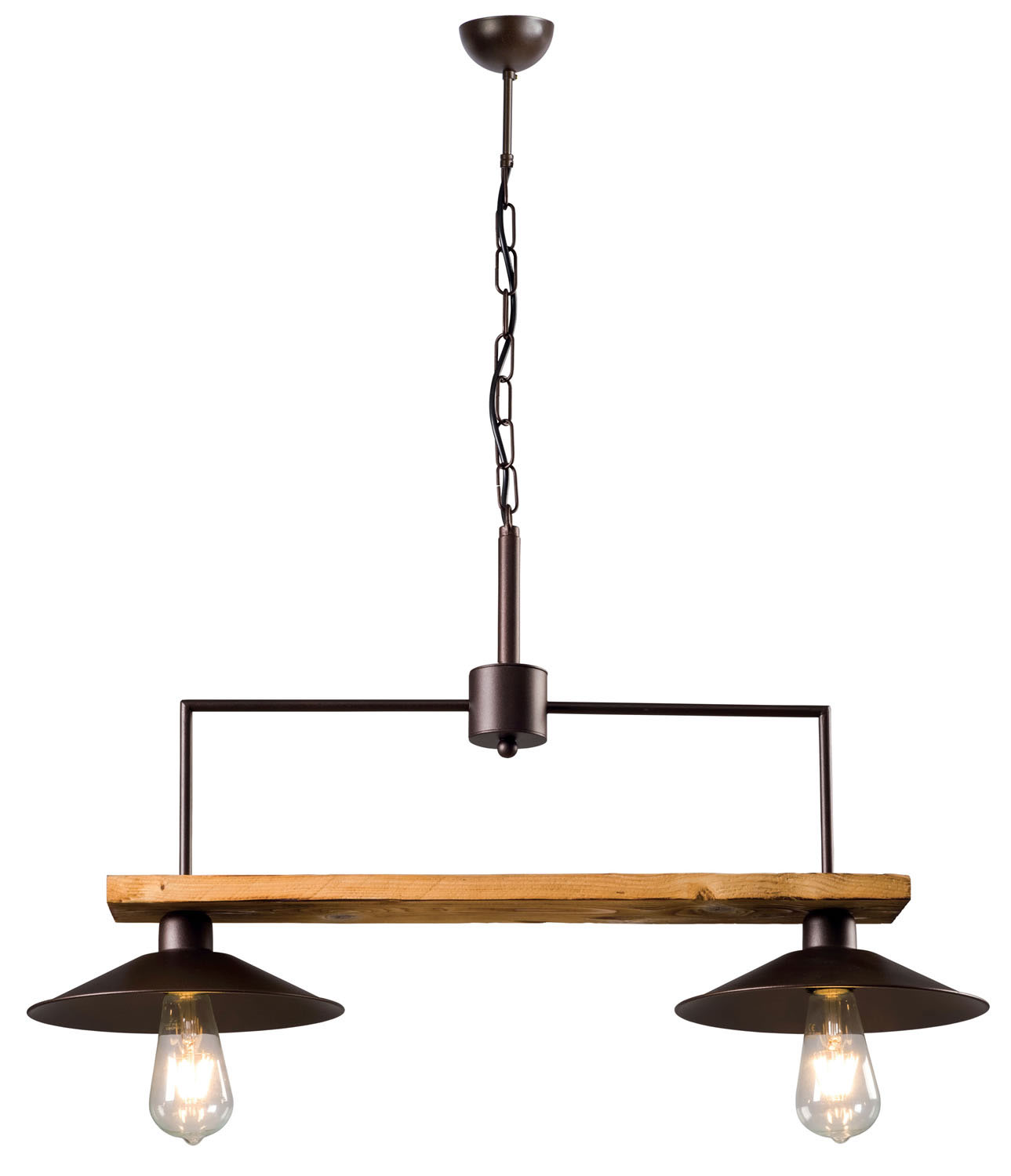 Φωτιστικό Πολύφωτο 2φ Ε27 σε μοντέρνα γραμμή με ξύλο σε χρώμα μελί smoked και μεταλλικά μέρη σε σκουριά με μεταλλικά καπέλα