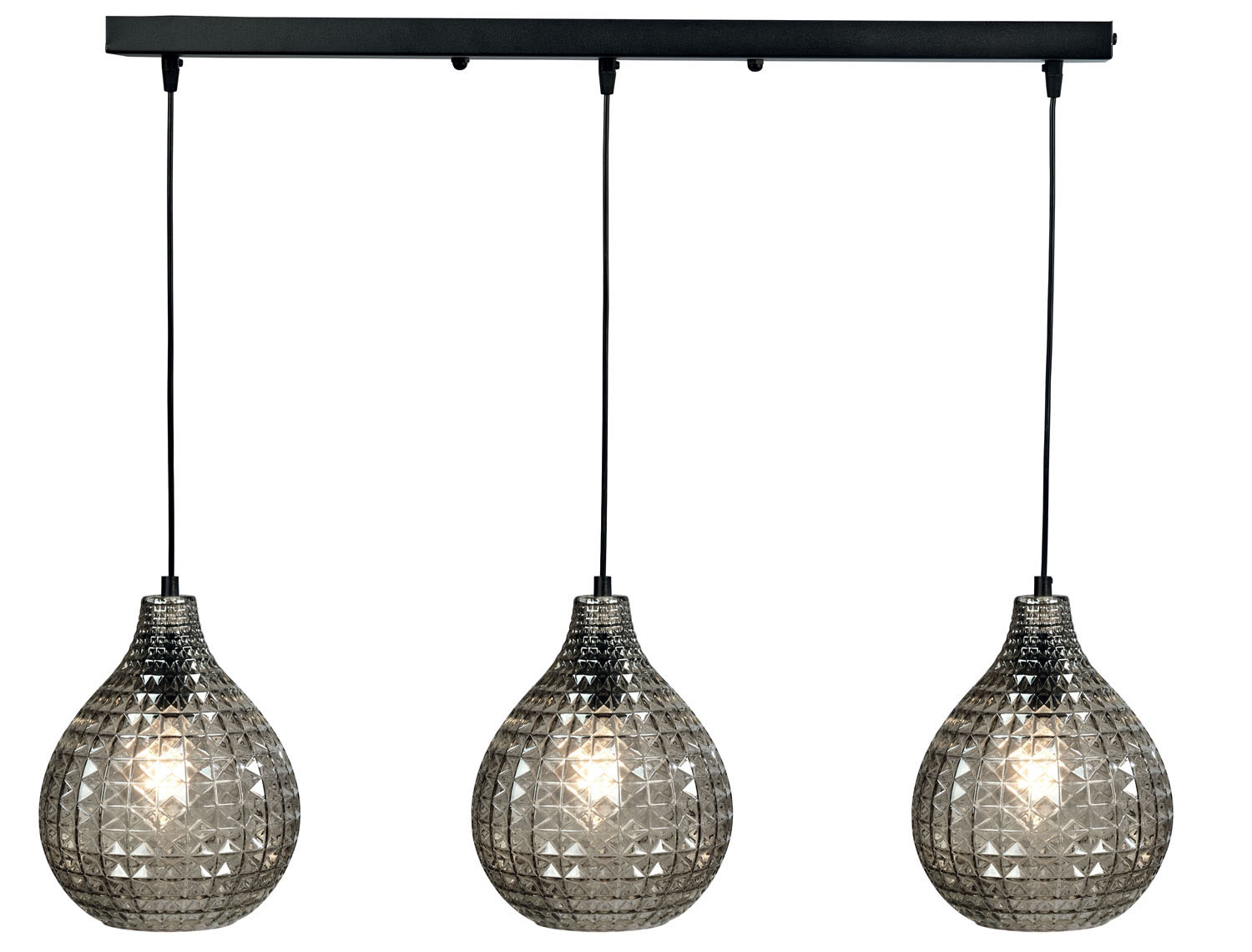 Φωτιστικό Πολύφωτο 3φ Ε27 σε μοντέρνα γραμμή, ράγα μεταλλική μαύρη, γυαλί φιμέ και καλώδιο υφασμάτινο