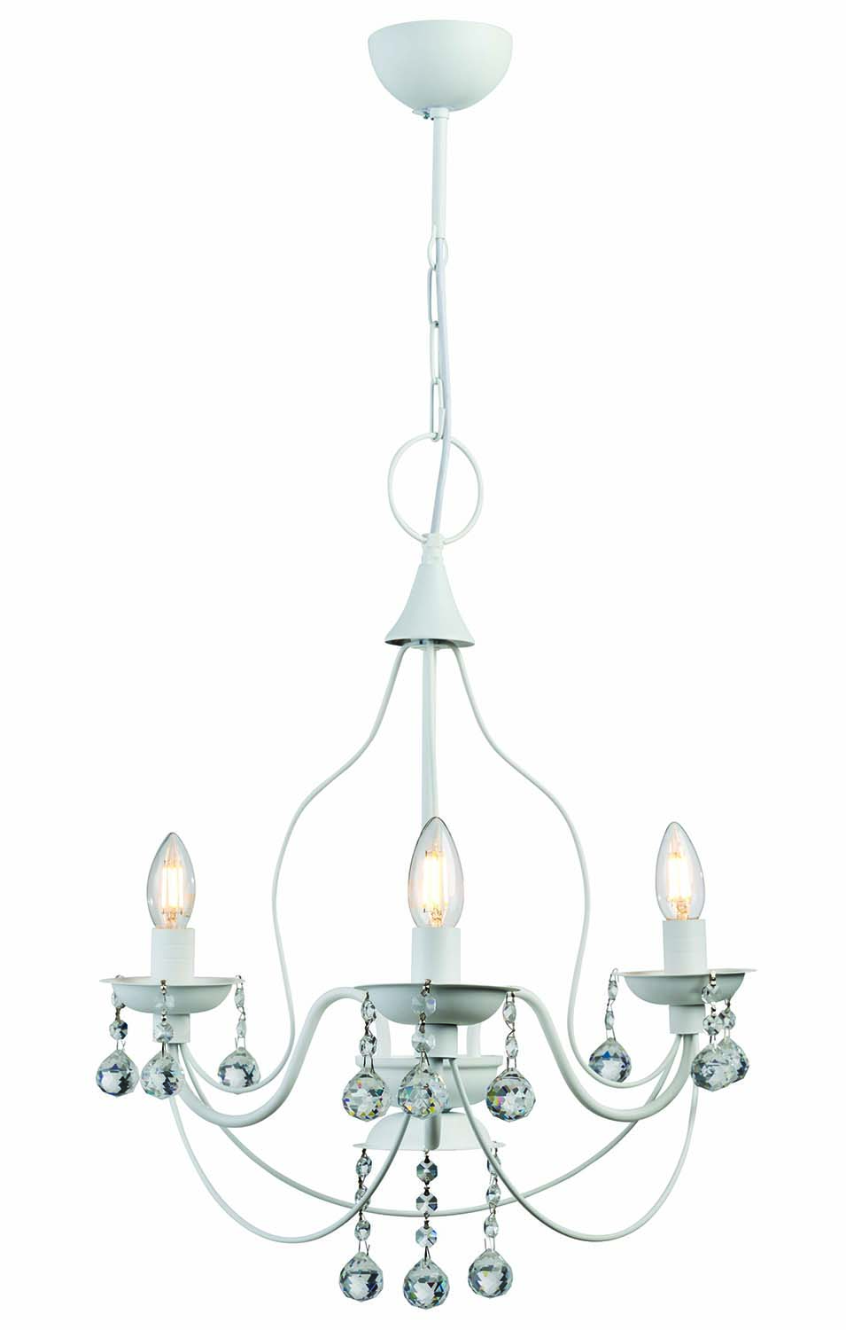 Φωτιστικό Πολύφωτο 3φ Ε14 Vintage μεταλλικό λευκό με διάφανα κρύσταλλα