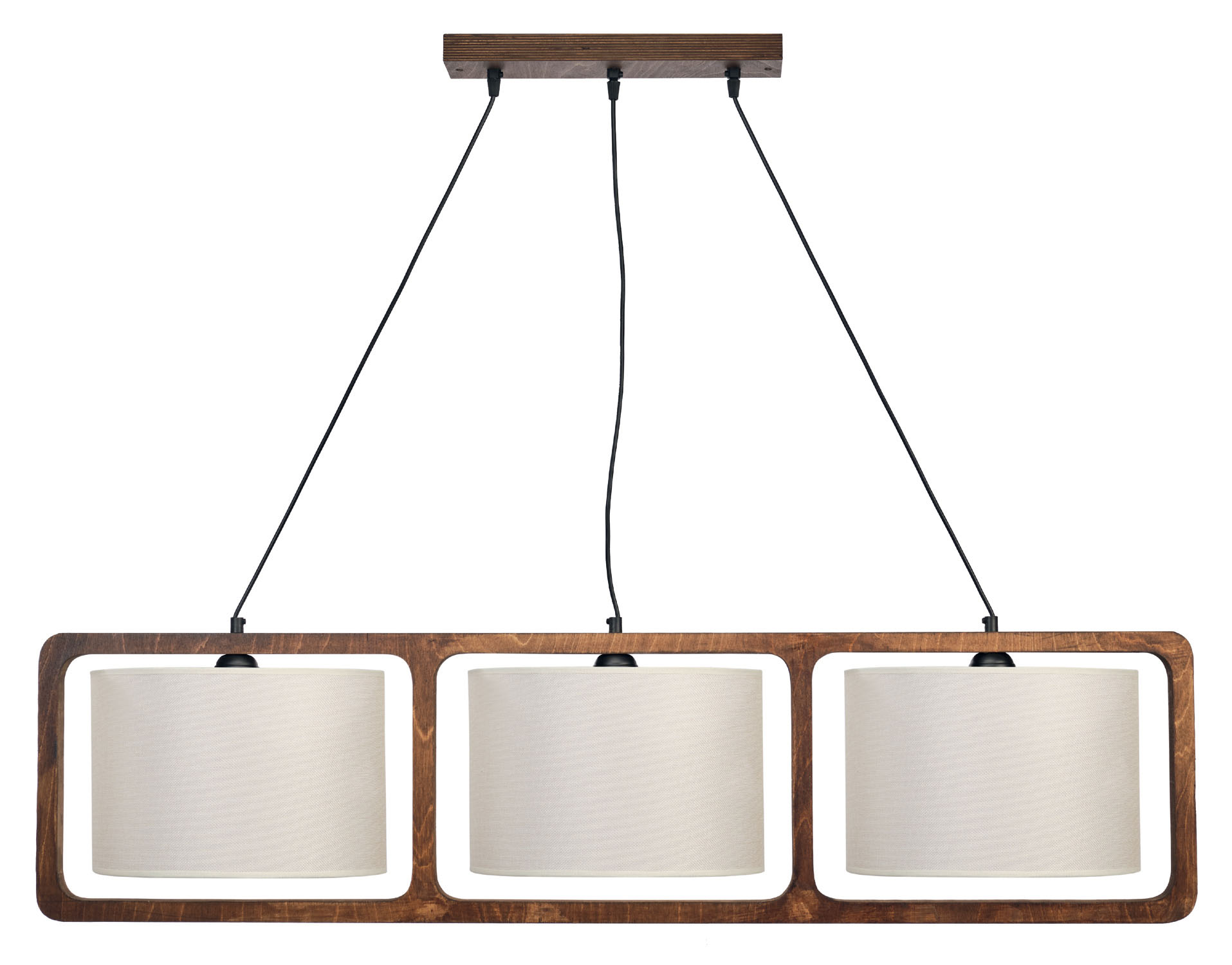 Φωτιστικό Πολύφωτο 3φ Ε27 σε μοντέρνα γραμμή με ξύλο σημύδα σε σκουρο χρώμα και αμπαζούρ Φ30 ύφασμα σε χρώμα μπεζ