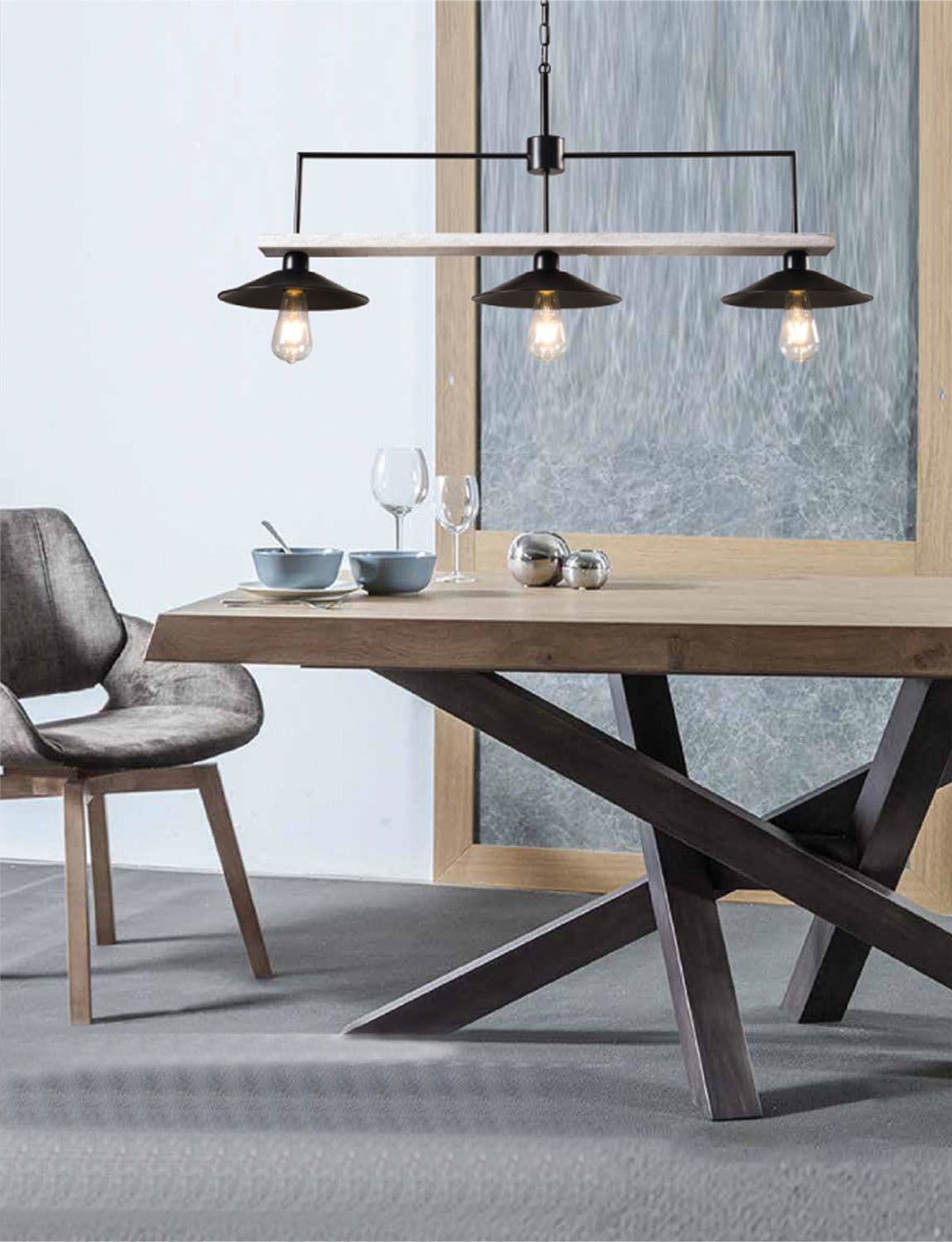 Φωτιστικό Πολύφωτο 3φ Ξύλο/Μέταλλο μαύρο Ε27