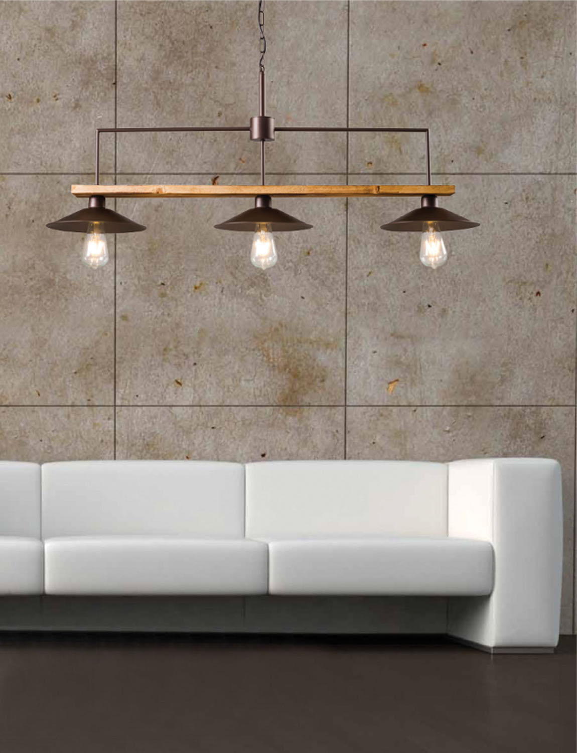 Φωτιστικό Πολύφωτο 3φ Ξύλο/Μέταλλο σκουριά Ε27