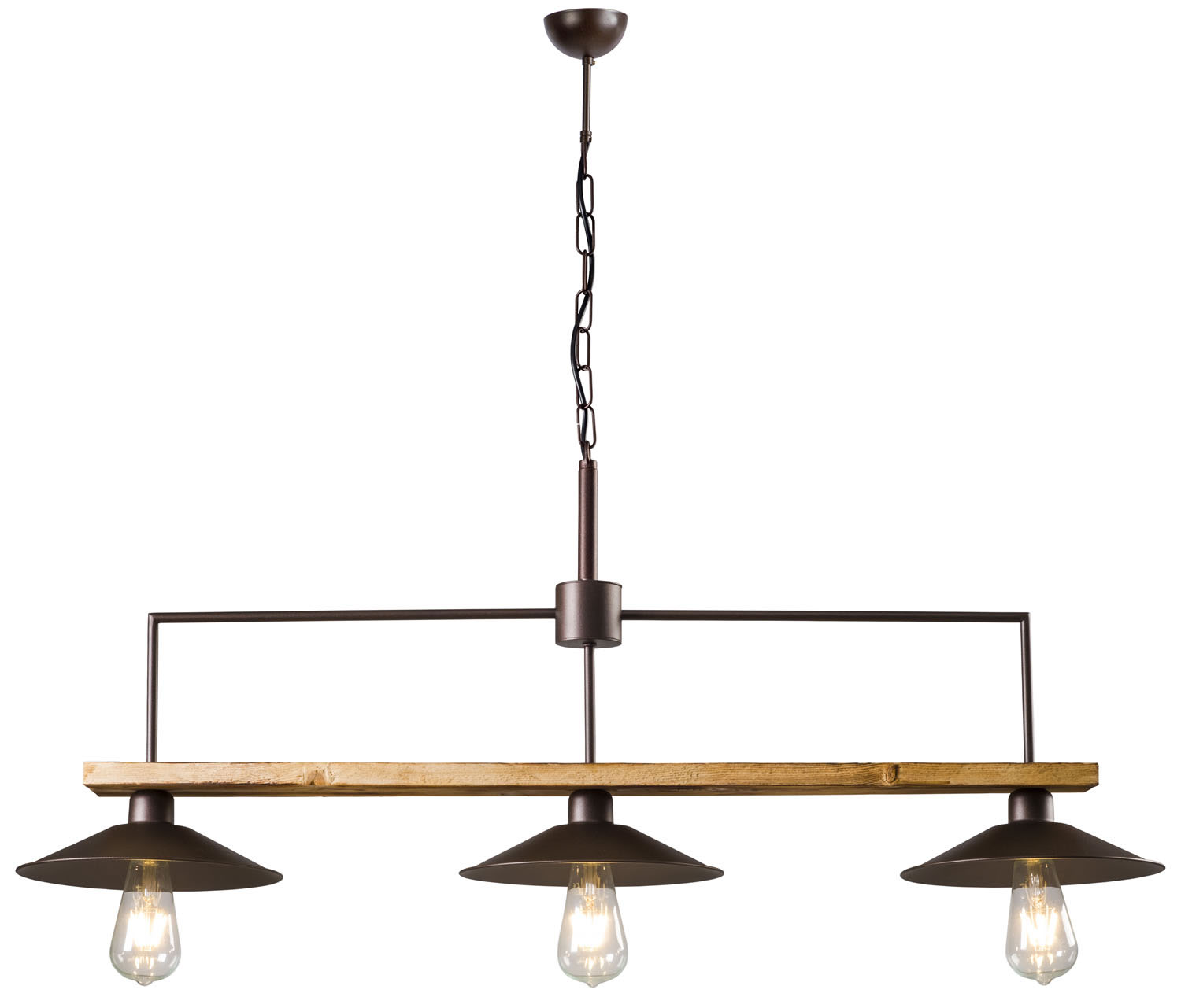 Φωτιστικό Πολύφωτο 3φ Ε27 σε μοντέρνα γραμμή με ξύλο σε χρώμα μελί smoked και μεταλλικά μέρη σε σκουριά με μεταλλικά καπέλα