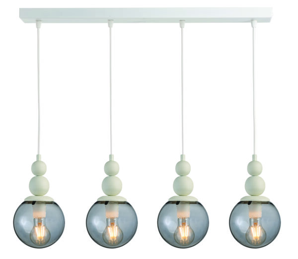 Φωτιστικό Πολύφωτο 4φ Ε27 σε μοντέρνα γραμμή, ράγα μεταλλική λευκή, γυαλί φιμέ Φ16