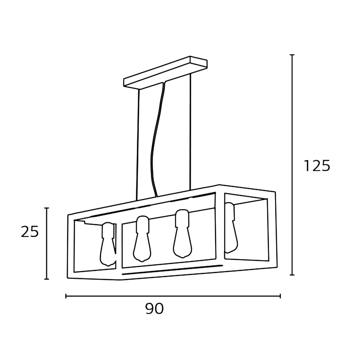 Φωτιστικό Πολύφωτο 4φ Ε27 σε μοντέρνα γραμμή σε ορθογώνιο μεταλλικό σκελετό και ξύλο σε φυσικό σκούρο χρώμα