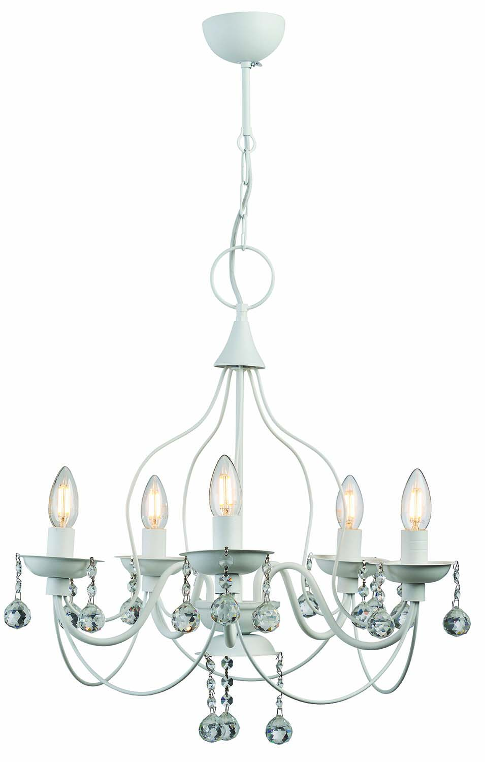 Φωτιστικό Πολύφωτο 5φ Ε14 Vintage μεταλλικό λευκό με διάφανα κρύσταλλα