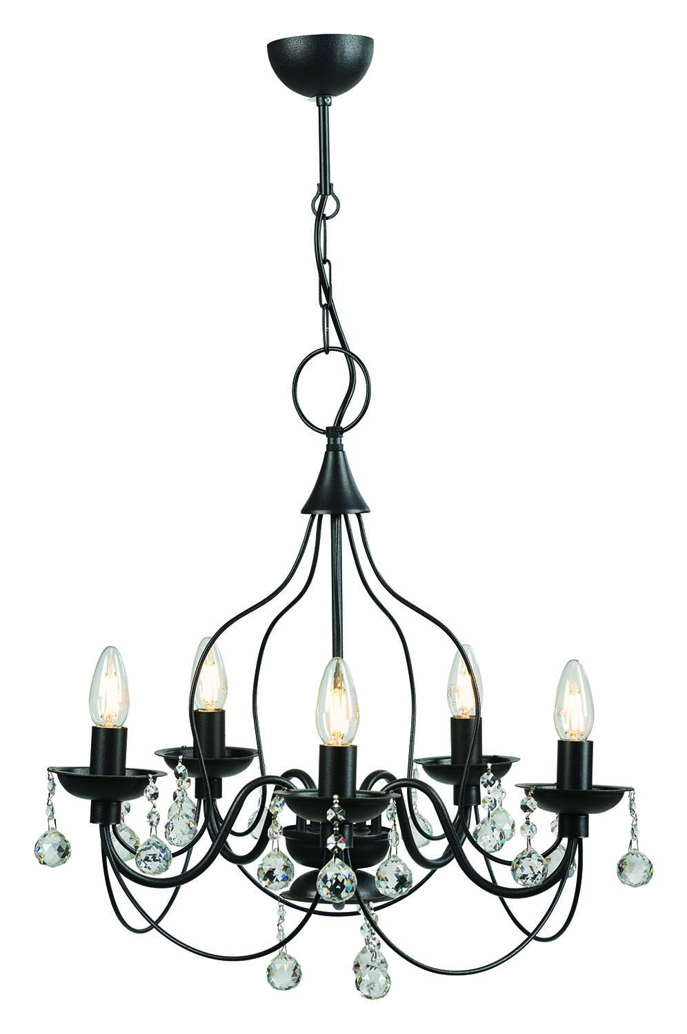 Φωτιστικό Πολύφωτο 5φ Ε14 Vintage μεταλλικό μαύρο με διάφανα κρύσταλλα