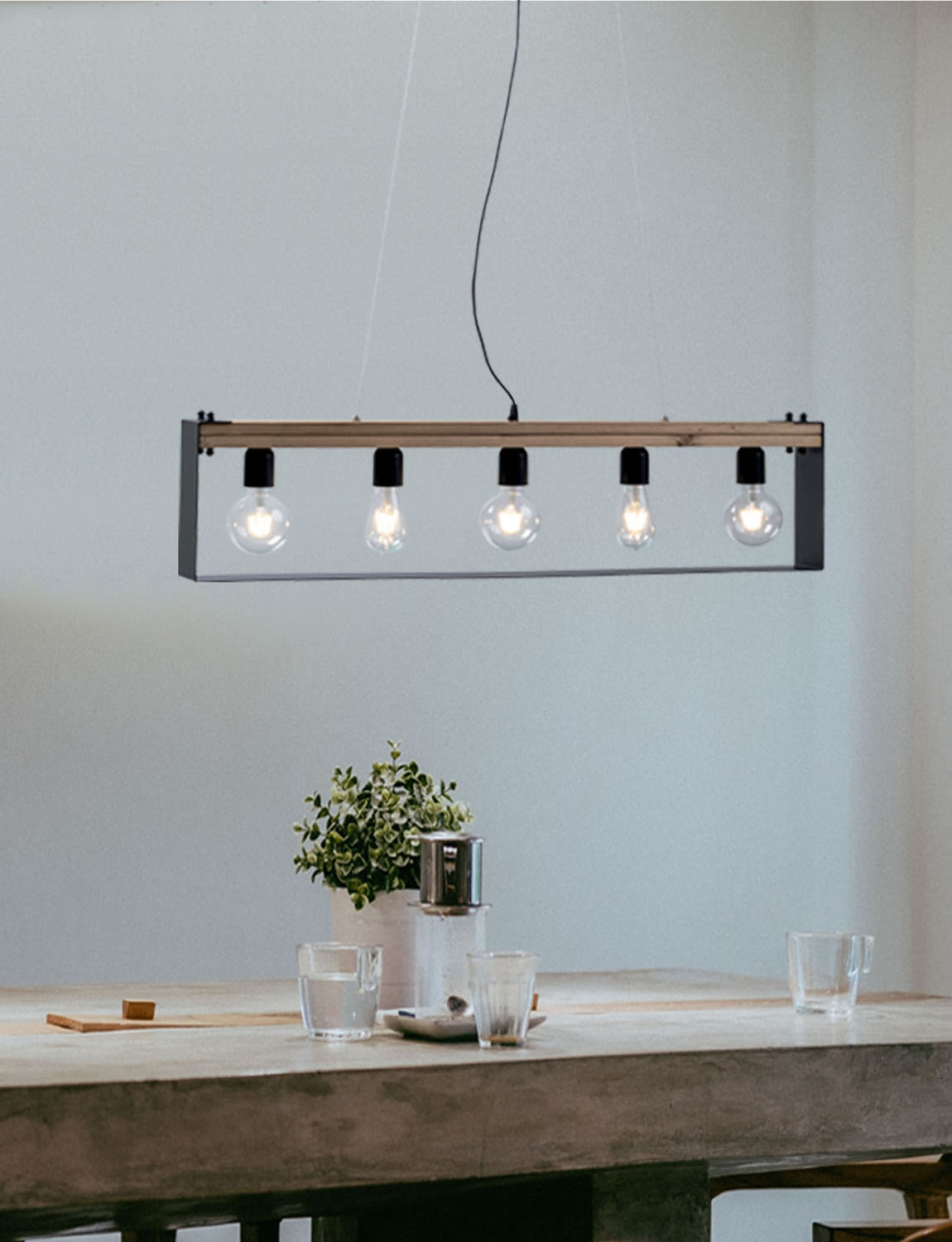 Φωτιστικό Πολύφωτο 5φ Ε27 σε μοντέρνα γραμμή με ξύλο σε φυσικό σκούρο χρώμα και μεταλλικά μέρη σε μαύρο