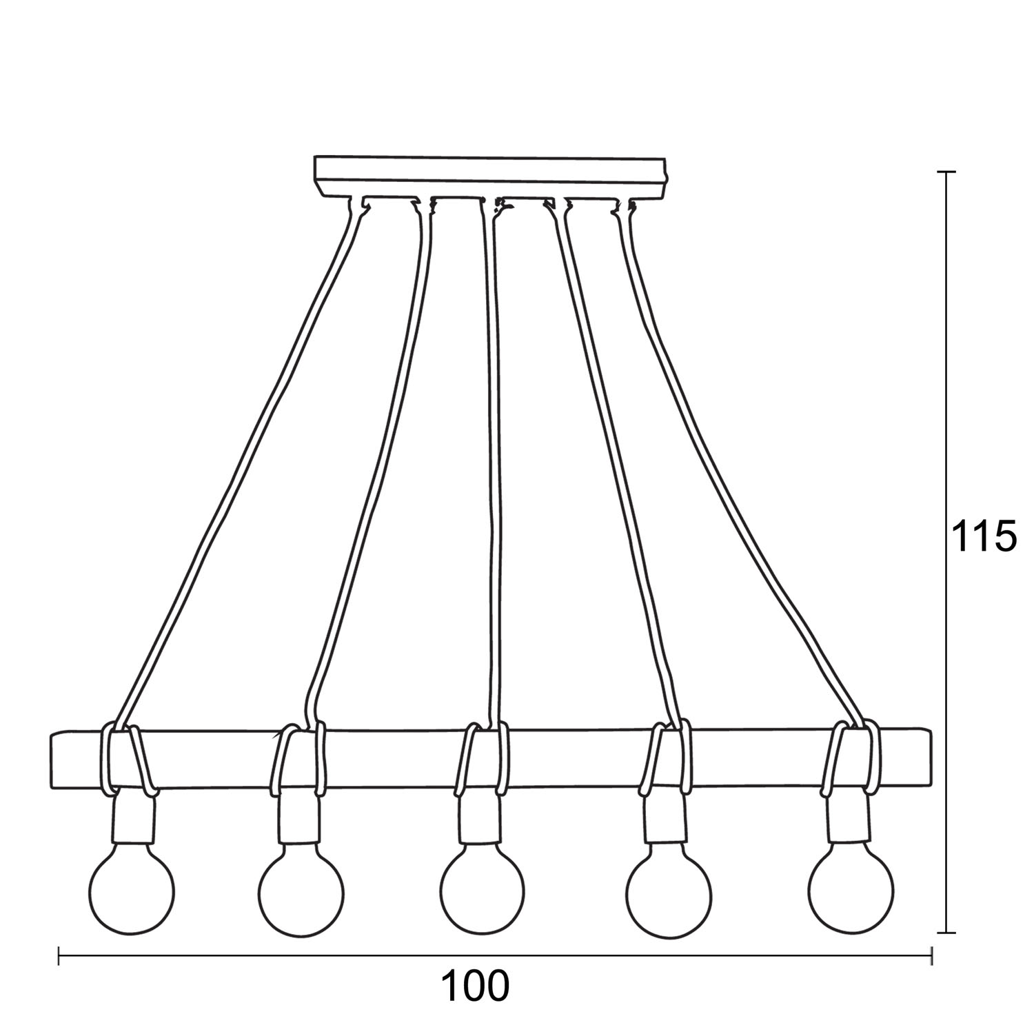 Φωτιστικό Πολύφωτο 5φ Ξύλο/Σχοινί Ε27