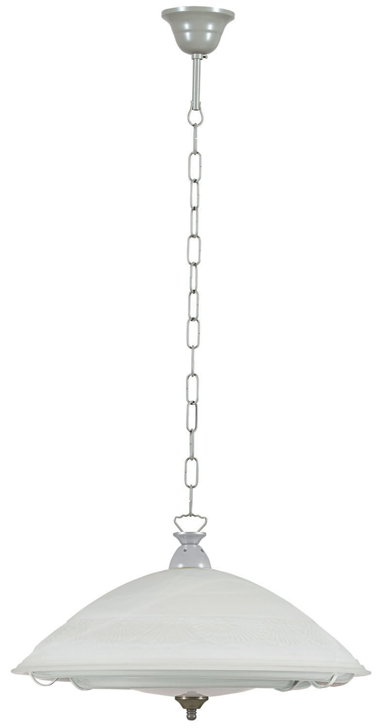 Φωτιστικό φθορίου γυαλί λευκό με μεταλλικά στηρίγματα ανάρτηση αλυσίδα νίκελ ματ και λάμπα 40w